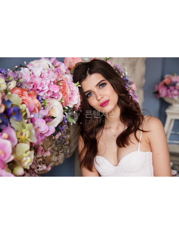 해외 여자모델 긴머리 소녀 메이크업 입술 눈 코 입아름다움 봄 꽃 미소녀 여성 > 이미지 쇼룸